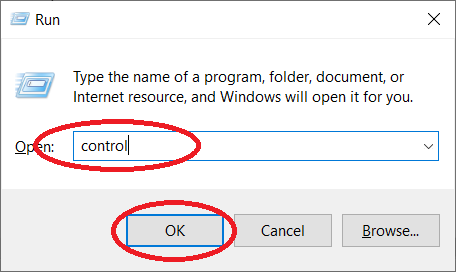 - Press the [Windows] key and the [R] key simultaneously on the keyboard, write "control" in the input field, and click [OK].